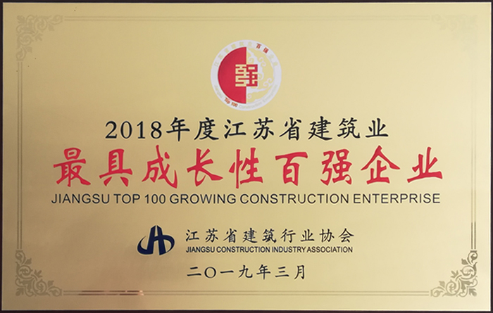 2018年度江蘇省建筑業(yè)最具成長性百強(qiáng)企業(yè)